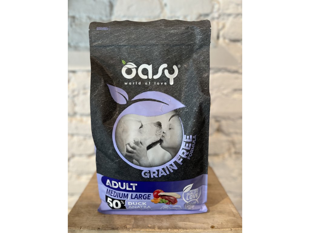 Oasy Grain Free Formula sú bezobilninové granule určené pre dospelé psy stredných a veľkých plemien.