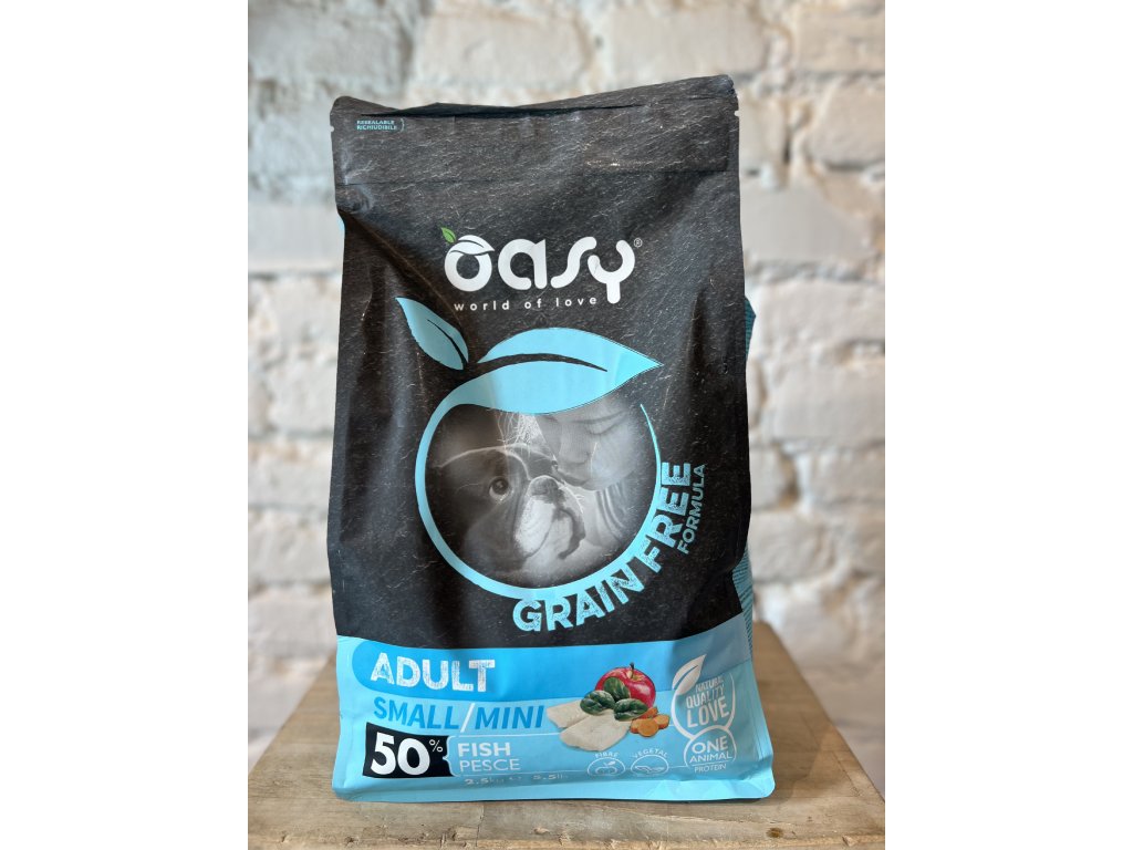 Oasy Grain Free Formula sú bezobilninové granule určené pre dospelé psy malých plemien.